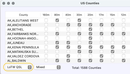 As neither CQ or JARL accept LoTW it would be more useful to use eQSL instead of LoTW as a source for confirmed QSL's for US Counties and Japanese Prefectures/Guns.