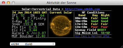 I believe the n0nbh site may have recently changed its format for Solar Terrestrial data feeds. I notice now the data feeds in the Rumlog window all have old data. i.e. one screen (Orange) has a date of June 14th (today is June 24th) while the (Gold) screen has a date of May 25th... It is very bizarre since almost every different screen color (Orange, Gold, Green, Red, White Light, etc.) has a different date listed for the feed. :shock: