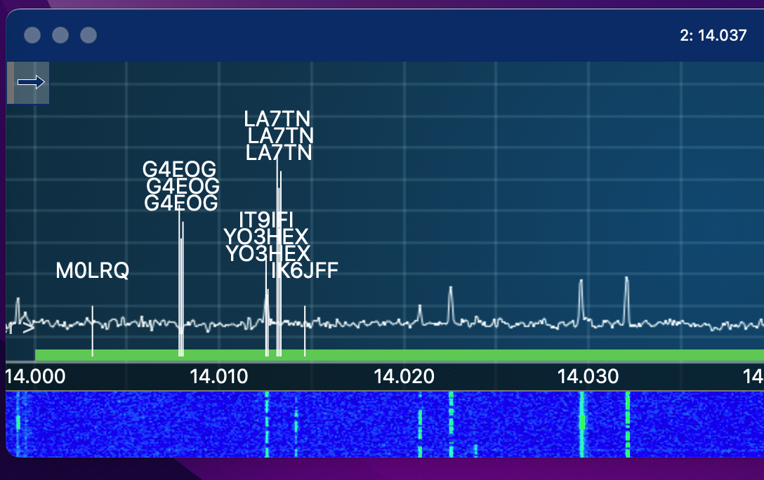 The good thing is that the spots on bands are clickable to report the call in the log page. The best could be if same could be made on spots on panadapter. The combination of MacLoggerDX and dogparkSDR can do this, thus clicking on spot in panadapter the call is copied in the log page of MacLoggerDX. Soon or later also the combination smartSDR Mac and RUMlogNG will achieve this. That time the bands will be useless. I am confident on this.