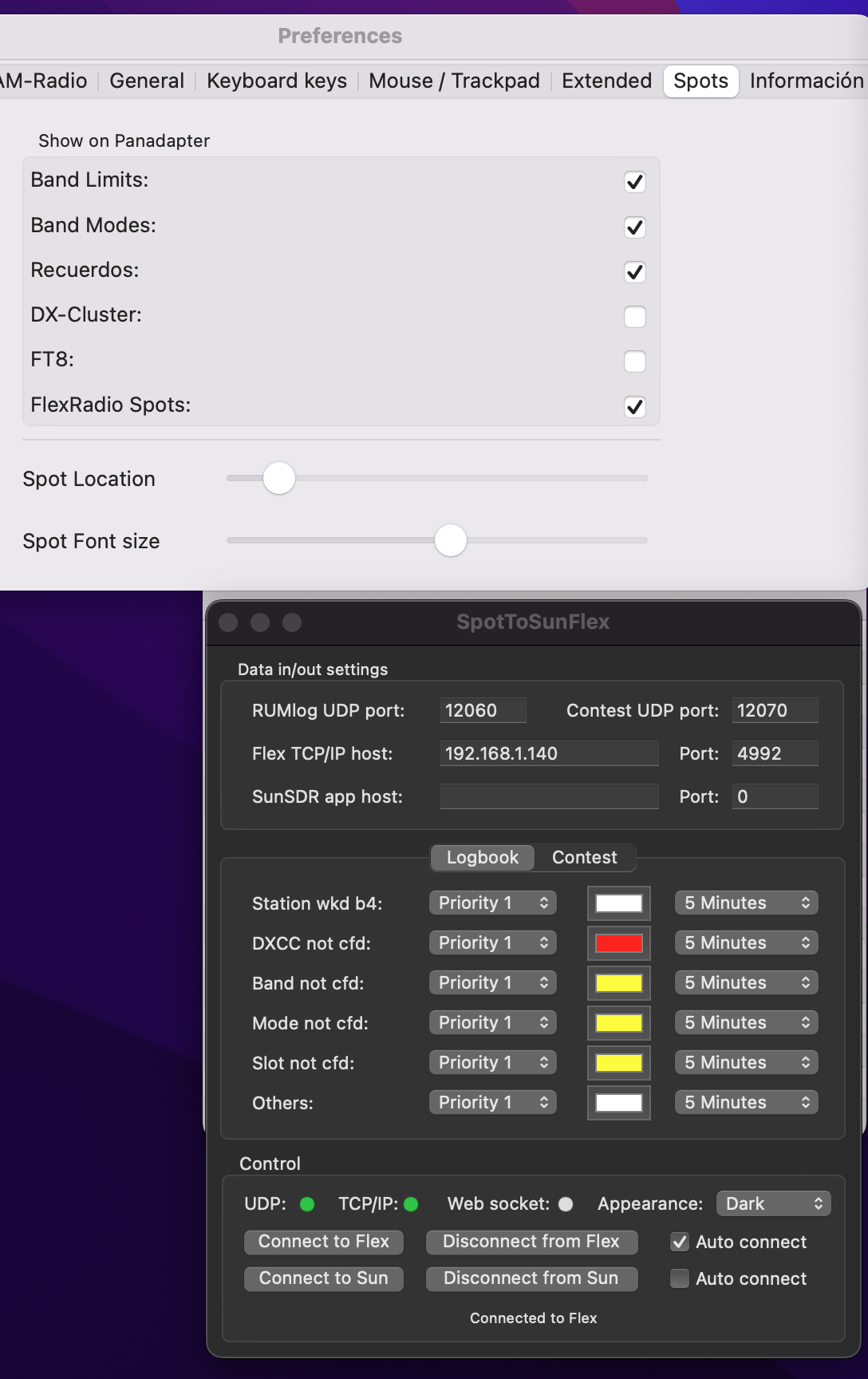 An example of this is that after my post I found the option to send the spots directly to my Flex from RUMlogNG without using the SpotToSunFlex app, now it is working better, only occasionally a duplicate appears.
