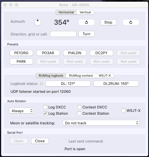 The Rotor app works great! I really like it. I'm using the ERC Easy USB rotor controller. But... there's only one strange behaviour. After startup of RL and Rotor the two programs do not communicate. I need to wake it up by editing a server / UDP setting in RL. After that the 'green light' (Logbook status) in Rotor is ON. After a while the communication goes off and the green spot also. At that point I need to edit a setting in RL and it is working again....