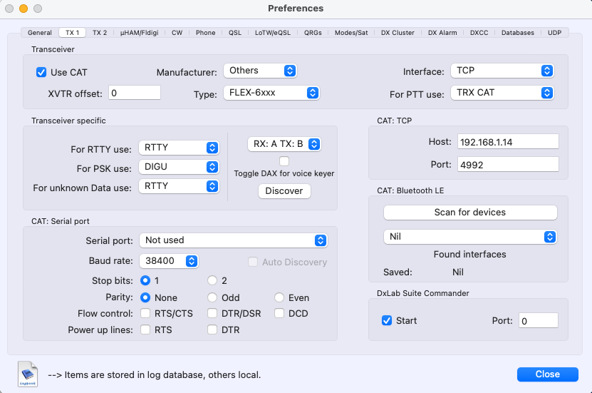 Just a note, do not enable DxLab Suite Commander in TX1 and TX2 and do the following setup at RUMlogNG setup: