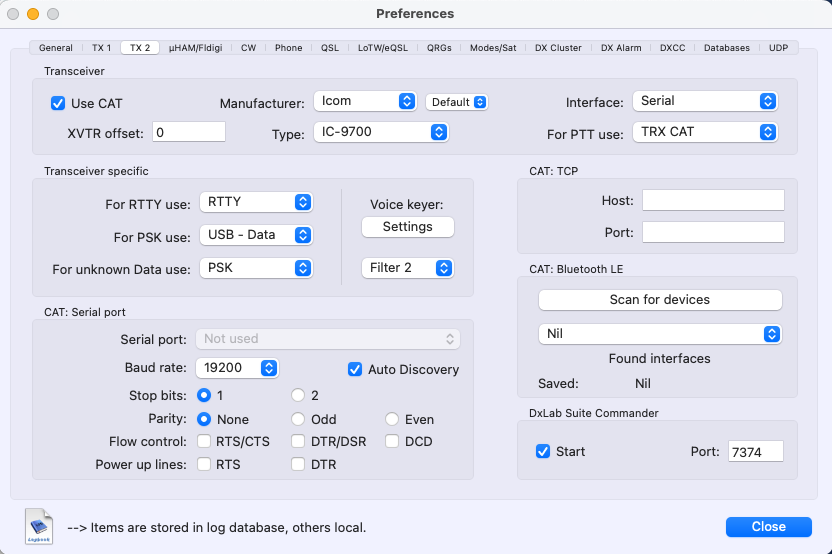 3. In RumLogNG on the "TX2" tab turned off the DxLab Suite Commander
