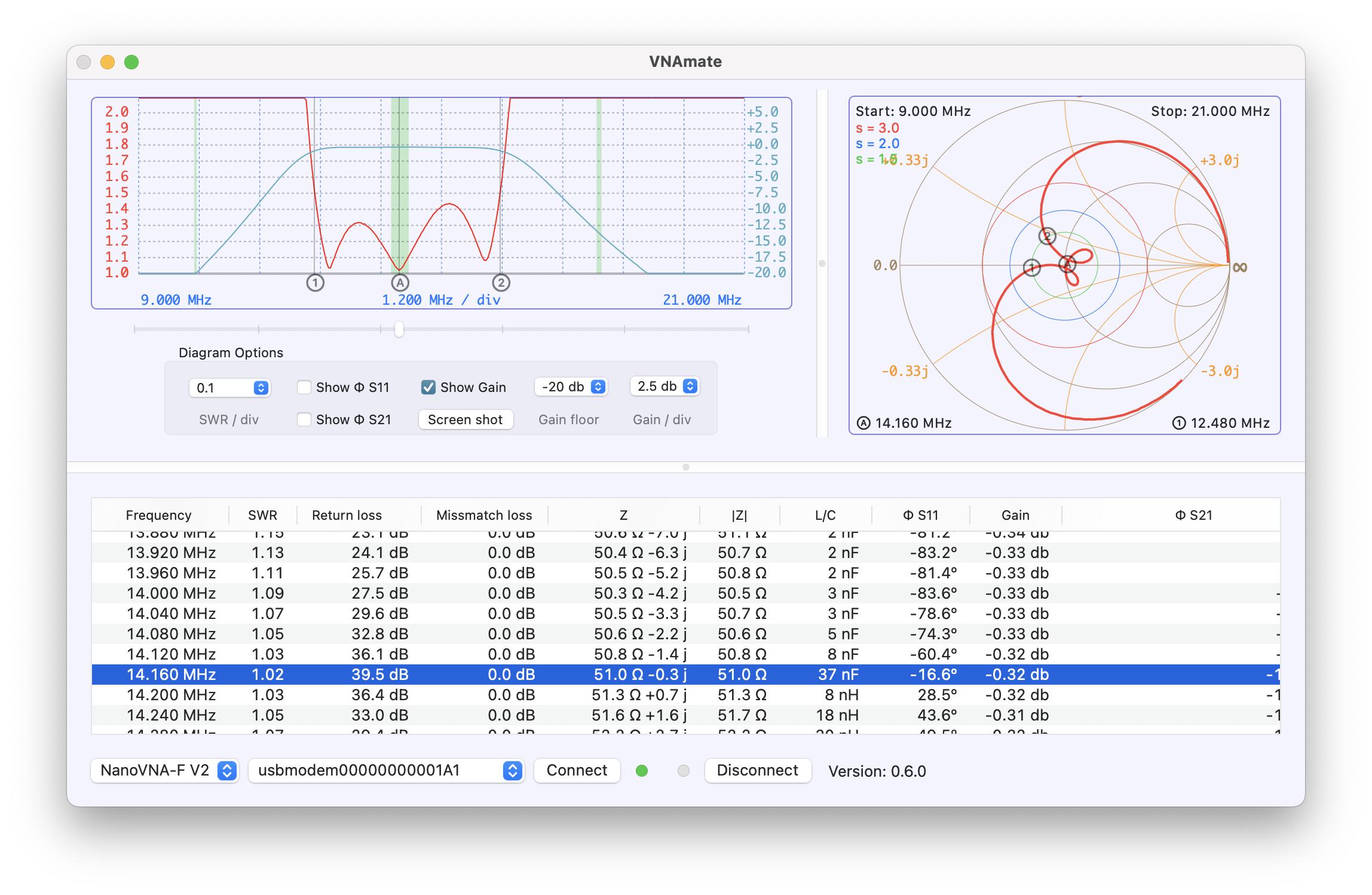 Since I was not able to find an easy to use native macOS application to work with a VNA, I made my own. This is just the first version. I'm very interested in user feedback and suggestions.