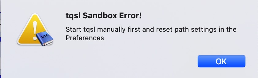 Background: I've had tqsl working successfully with RUMlogNG for a couple of years until a few months ago. In the past, it seems like every time I updated tqsl I'd encounter the sandbox error again. I always managed to fix it by resetting the path settings in RUMlongNG. Then about two tqsl updates ago, I was never able to get rid of the sandbox error.