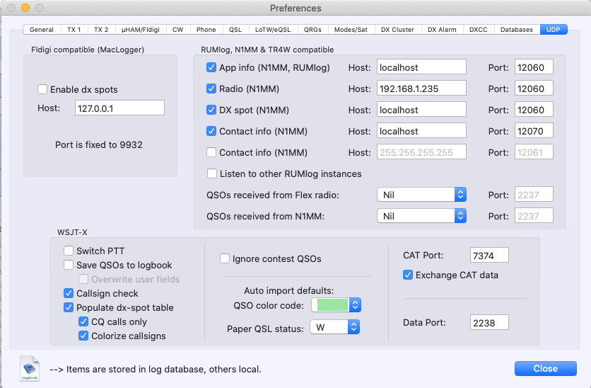 Can someone please give me the network settings for RUMlogNG and N1MM+? The IP's: