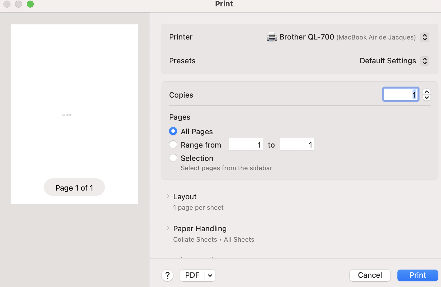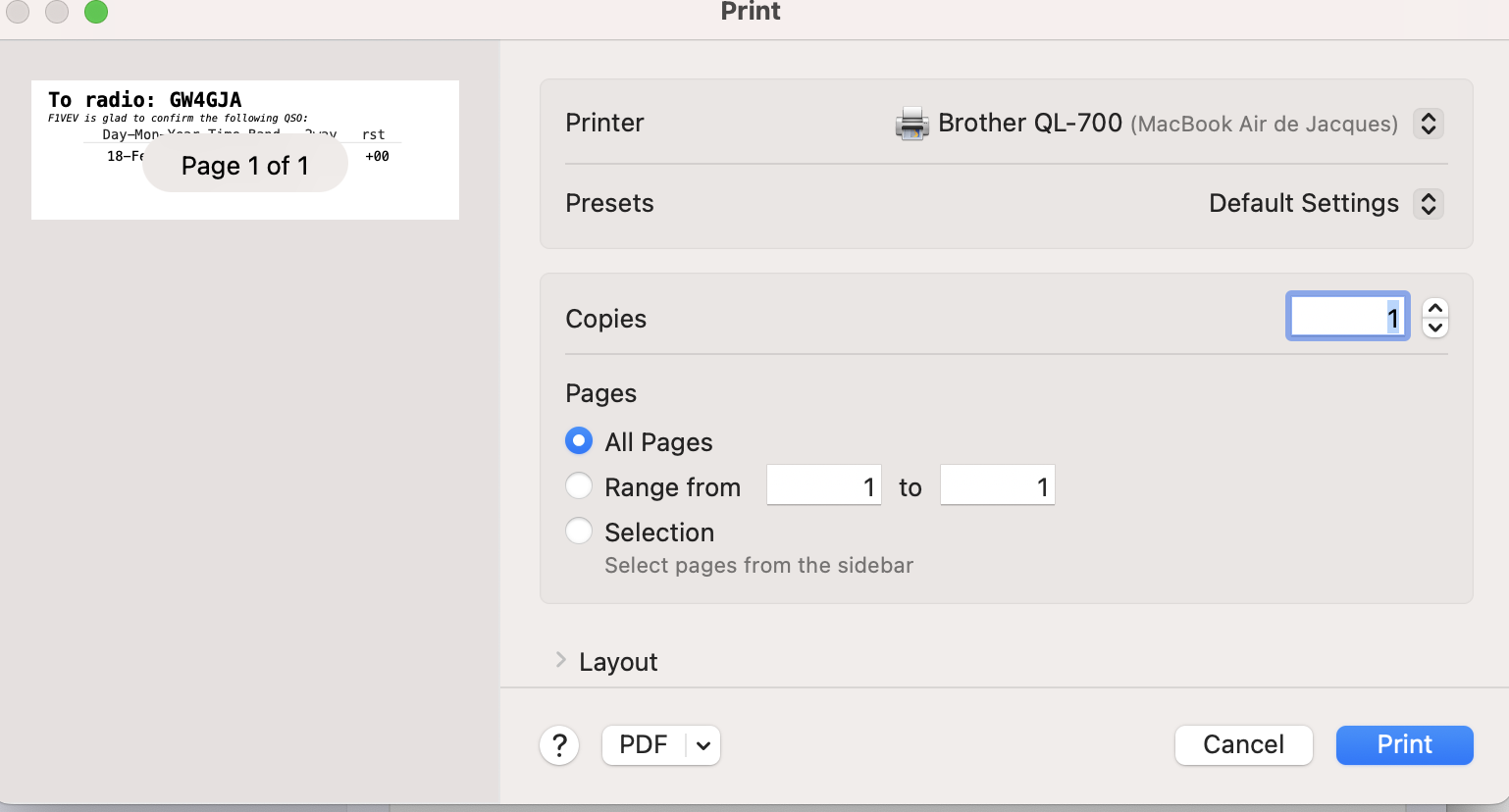 Re: cannot print qsl labels QL 700