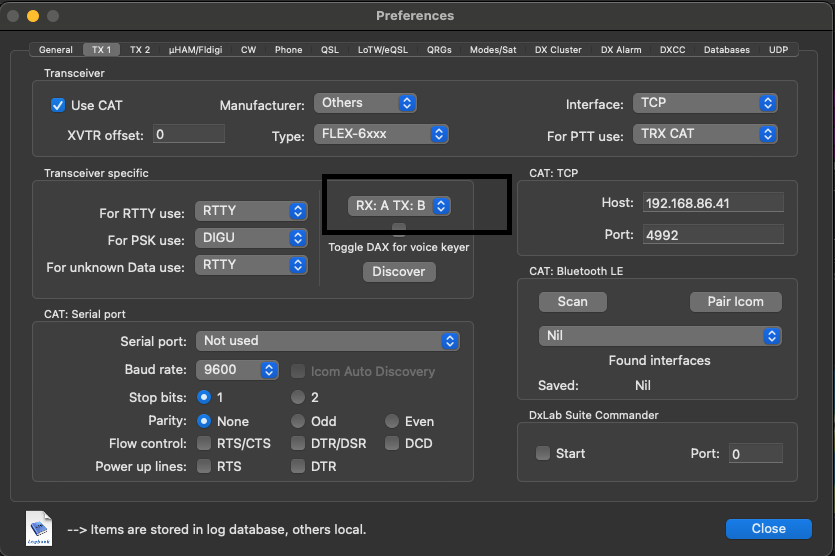 I am looking for a way to configure the second Panadaptor of my Flex 6600 as Trx#2 in the RumlogNG. Trx#1 is already connected to the 1st PanAdaptor and use the port 4992 Flex to communicate. Is it possible to use the second PanAdaptor as Trx#2 in RumlogNg? If So which port to be used ? I have tried 4993 and 4994 ports along with the IP address of Flex 6600 , but it doesn't really communicate.