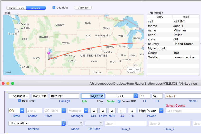 When I enter a callsign to pull up the information, the map sometimes will show the pin in the wrong area. It seems to work ok for HamQTH, but for QRZ, it often drops the pin in the wrong spot.