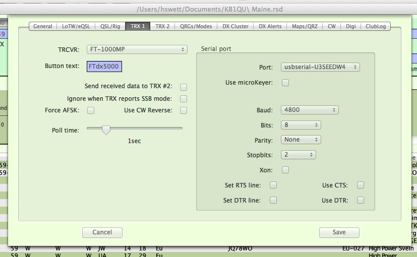 Hi, Tom Finally got it working. All I had to do was use the FT2000 xcvr setting rather than the FT1000. It took me way to long to figure that one out. Now I am working on integrating the Cocoamodem functions through the Microham USB Interface III. It looks like that is not supported through the CW ...