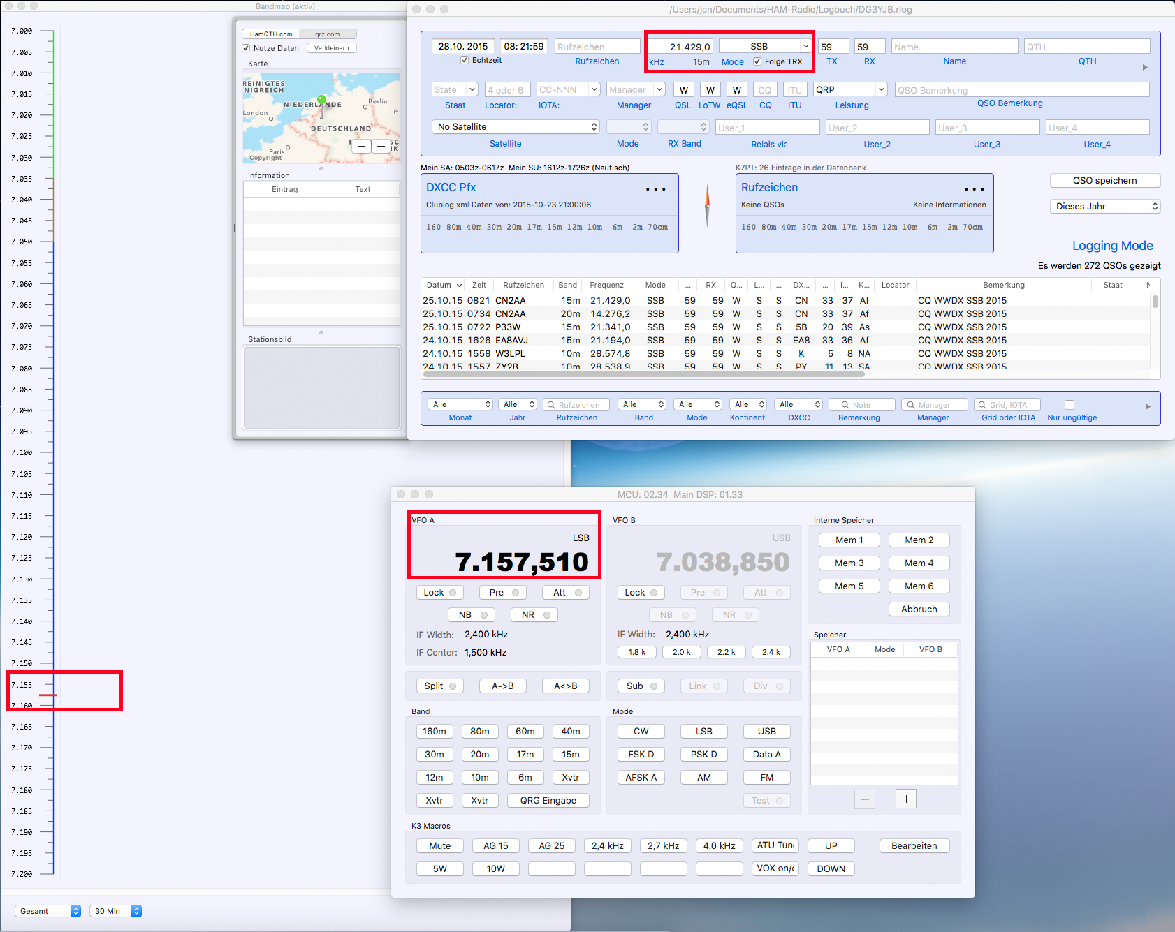 My setup is a Elecraft KX3, RUMlogNG 2.1 an MAC OS OX 10.11.1 (El Capitan).