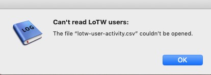 I found a bug with V 4.0.2 and Mojave. When I select "Load LOTW users" under the "Online" menu item, Rumlog reports a message in the attached screen capture. (I have Rumlog installed in ~/Applications, and not in /Applications)