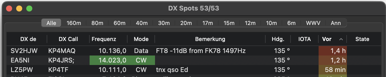 Hi Tom. I was looking at the "Hdg." column in the "DX Spots" window when I saw the incorrect value for Puerto Rico. Also, I was connected to an AR Cluster instead of a DX Spider cluster. The headings for all the other spots seemed to be appropriate. It was just that single value for Puerto Rico that puzzled me.