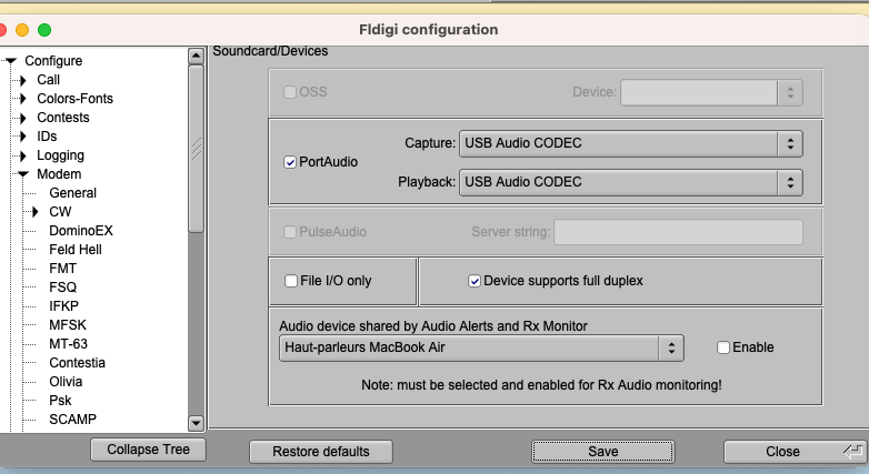 I canot find a FLDIGI forum for Mac but now when trying RTTY CW I have no sound (from TX whne its tansmiting) and nothing is received on the waterfall ?
