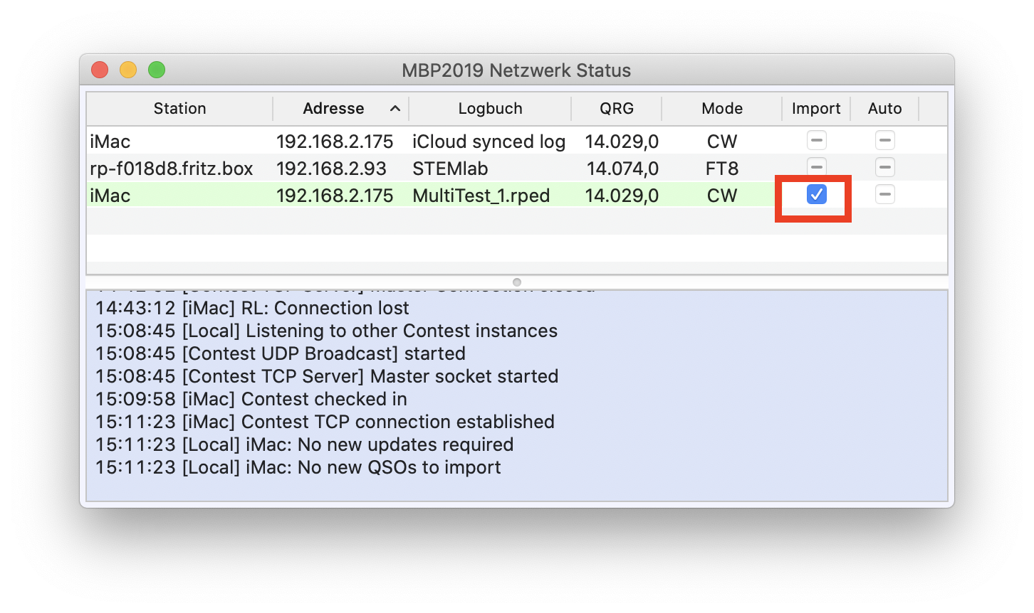 Man beachte bei 2:06, dass beim Programmstart die QSOs der anderen Station welche zwischenzeitlich geloggt wurden, auch importiert werden!
