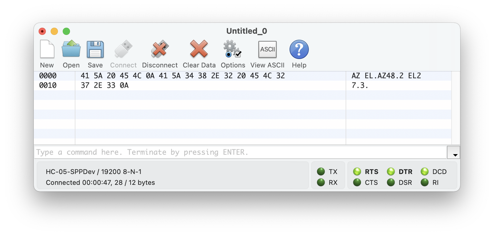 Tom, the problem is not the serial terminal, when I send AZ EL 0xA I get the current position, like AZ 90.2 EL 10.3, as expected.