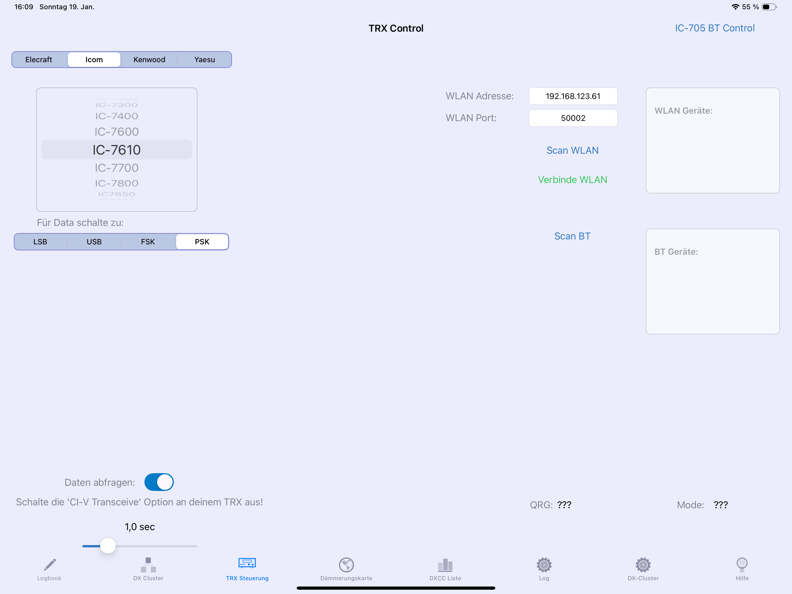 I‘m looking for a solution to connect my Icom 7610 via WLAN with my iPad. The SDR-Control App works fine on the iPad, but Rumlog2go does not discover the Icom via WLAN. Maybe there a some tricks I do not know?