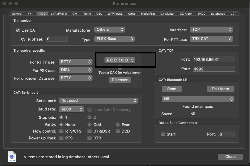 Thanks for the reply, I tried to configure RumLogNG to use same IP address and Port 4992 of FlexRadio as Trx# 2.
