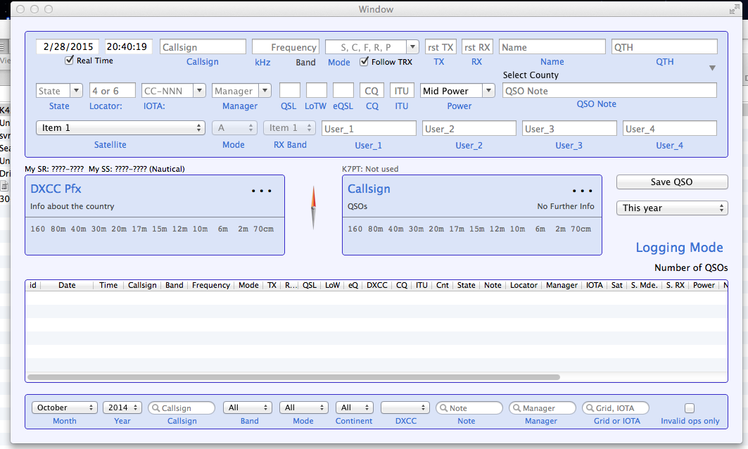 I rebooted the Mac and it now seems to save preferences, but, it still will not open the log file that was open when the app was last closed. Plus, after I manually open the log file, I have to change the "ALL QSOs" filter option to finally get the app to display log entries. Still presented with the same initial screen with the October 2014 filter selection.